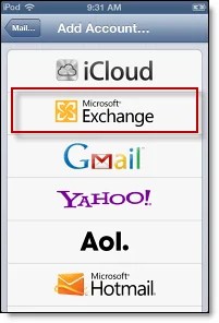 Tap on the add account button and you’ll be presented with the choice of types of account that you want to use. You can use GMail here, but I prefer to use Exchange simply because it pushes the information to the phone asynchronously
